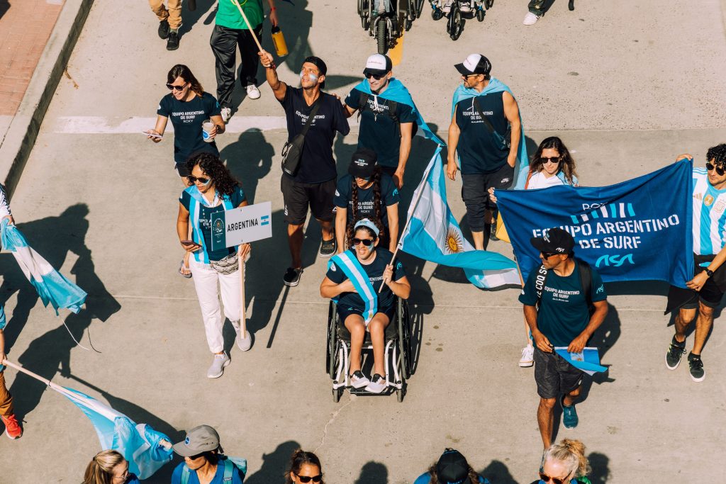 Cerca de 140 atletas, representando a 24 selecciones nacionales y 9 categorías diferentes de surf adaptado, participaron en el Desfile de las Naciones. Los equipos marcharon por The Strand con banderas ondeando al viento y cánticos resonando, antes de reunirse en el Anfiteatro Junior Seau Beach para la ceremonia insignia de la ISA, Arenas del Mundo. Un miembro de cada selección nacional vertió arena de su playa local en un recipiente, símbolo de la unión pacífica de las naciones del mundo a través del surf.