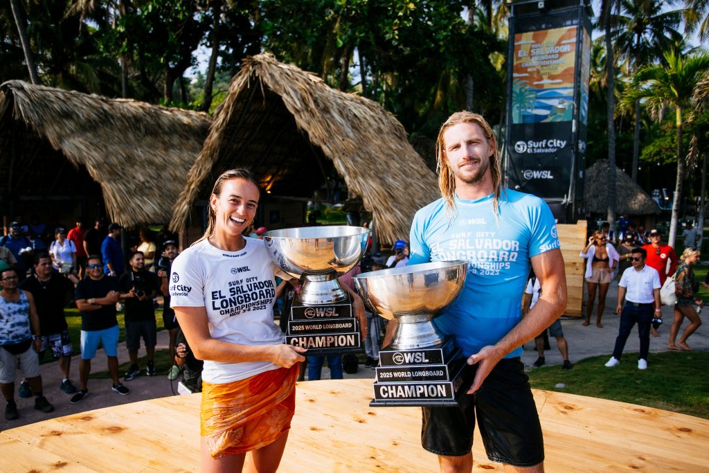 EL SUNZAL, La Libertad, El Salvador (viernes, 7 de noviembre de 2025) Rachael Tilly (EE. UU.) y Kai Ellice-Flint (AUS) ganaron el Campeonato Surf City El Salvador de Longboard y se coronaron Campeones Mundiales de Longboard 2025. En una jornada memorable, Tilly, con un desempeño inigualable, logró un histórico tercer título mundial de longboard de forma consecutiva tras ganar seis mangas seguidas, mientras que Ellice-Flint, la revelación de 2025 y ahora Campeón de Longboard, obtuvo su primer título con una actuación dominante.