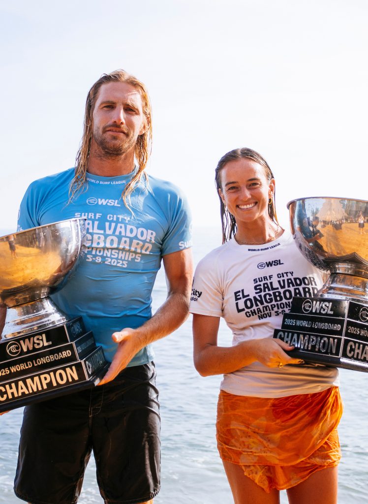 EL SUNZAL, La Libertad, El Salvador (viernes, 7 de noviembre de 2025) Rachael Tilly (EE. UU.) y Kai Ellice-Flint (AUS) ganaron el Campeonato Surf City El Salvador de Longboard y se coronaron Campeones Mundiales de Longboard 2025. En una jornada memorable, Tilly, con un desempeño inigualable, logró un histórico tercer título mundial de longboard de forma consecutiva tras ganar seis mangas seguidas, mientras que Ellice-Flint, la revelación de 2025 y ahora Campeón de Longboard, obtuvo su primer título con una actuación dominante.