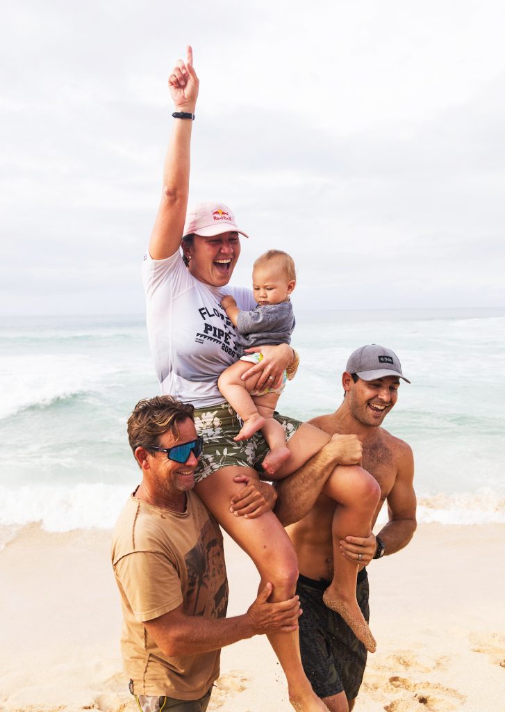 Carissa Moore también nos comentaba “me prepare para obtner una segunda victoria en la WSL en Pipe y encontre otro un buen tubo para dar un giro importante en la final, registrando un 7.83 y prácticamente sellando mi victoria al llegar a los minutos finales y ganando, me emocione mucho con mi bebe Olena en brazos a la salida” con su bebé, Olena, en sus brazos”.