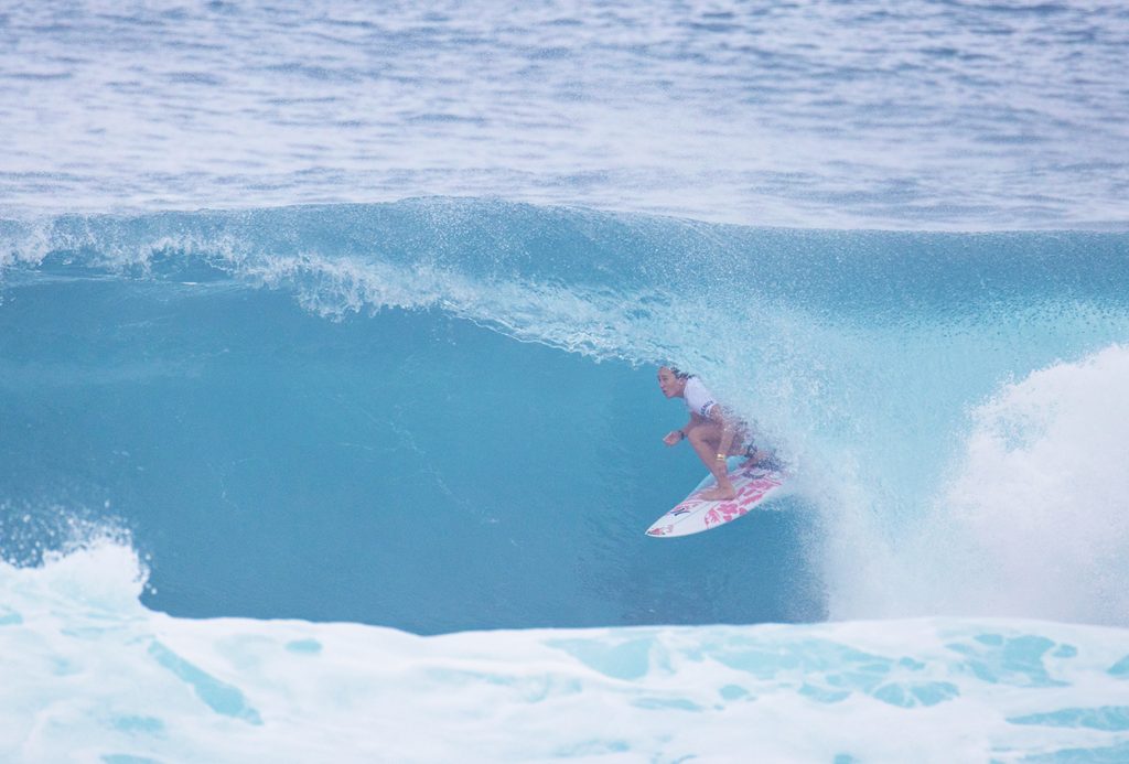 Carissa Moore en el tubo 7.83. Foto Heff / WSL