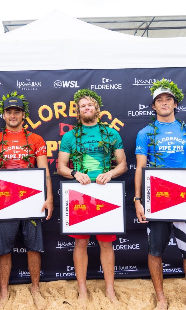 Tras casi lograr la defensa de su título de Pipe Pro QS 2021, John John Florence (HAW) le recordó al mundo que está listo para 2026 tras una actuación espectacular de principio a fin en el Florence Pipe Pro 2025. El debut de Florence con un tiempo de 18.10 en los dieciseisavos de final dio lugar a una brillante racha en la final, que incluyó un total de 15.40 en la serie de cuartos de final, 9.00 en las semifinales y 15.90 en la final. El tres veces campeón del mundo, Florence, también disfrutó de la oportunidad de revitalizar este evento junto a sus hermanos Nathan e Ivan y el equipo de Florence.