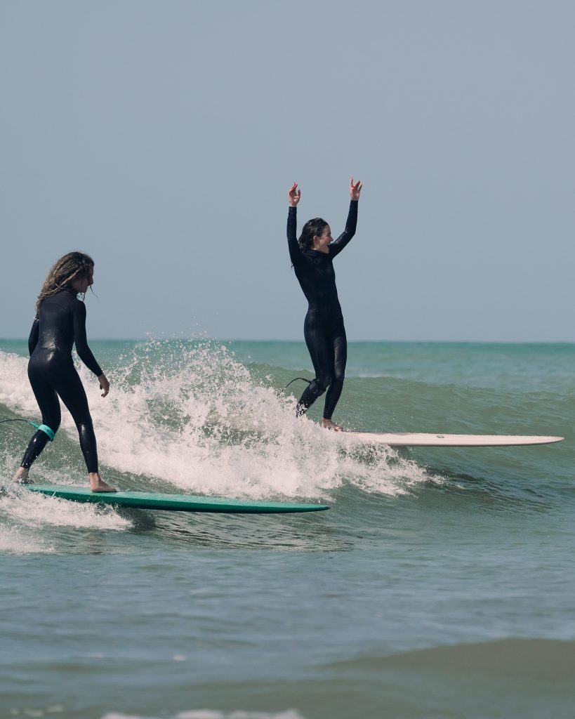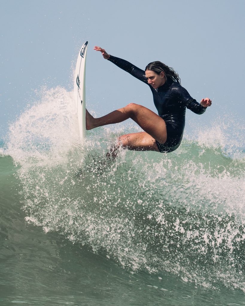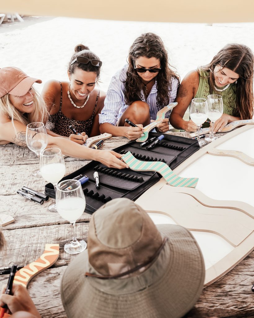 El surf ocupo un lugar central dentro de la experiencia, reforzando el vínculo de la marca con el océano y el movimiento. La jornada como estaba previsto contó con la participación de la surfista profesional y campeona Lucía Induraín, quien brindo una charla íntima y abrió un espacio de intercambio para inspirar y responder preguntas, antes de entrar al mar para una sesión de surfing junto a las participantes.