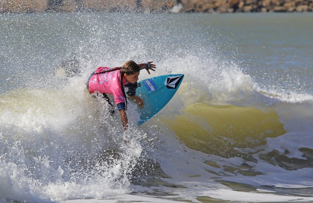 Aymara Ricaldone local de Biología será una de las figuras del campeonato. La vemos en la edición 2025 del Rip Curl Grom Search. Foto Mariano Antunez